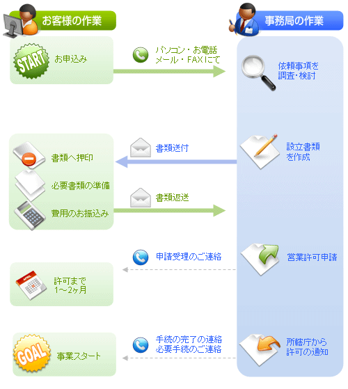 会社設立していただいたお客様限定料金で専門家である行政書士が迅速、確実に各種許可の申請手続を代理させて